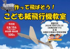 参加者募集 2024-09-18 【2024年10月13日(日)】作って飛ばそう!こども紙飛行機教室 今年も、目黒区民まつりで「作って飛ばそう!こども紙飛行機教室」が開催されます。 みなさん、ぜひご参加下さい!! 開催日時:2024年10月13日(日)【目黒区民まつり】 会 場:目黒区立田道小学校体育館 予約制 定員 1… 続きを読む > |