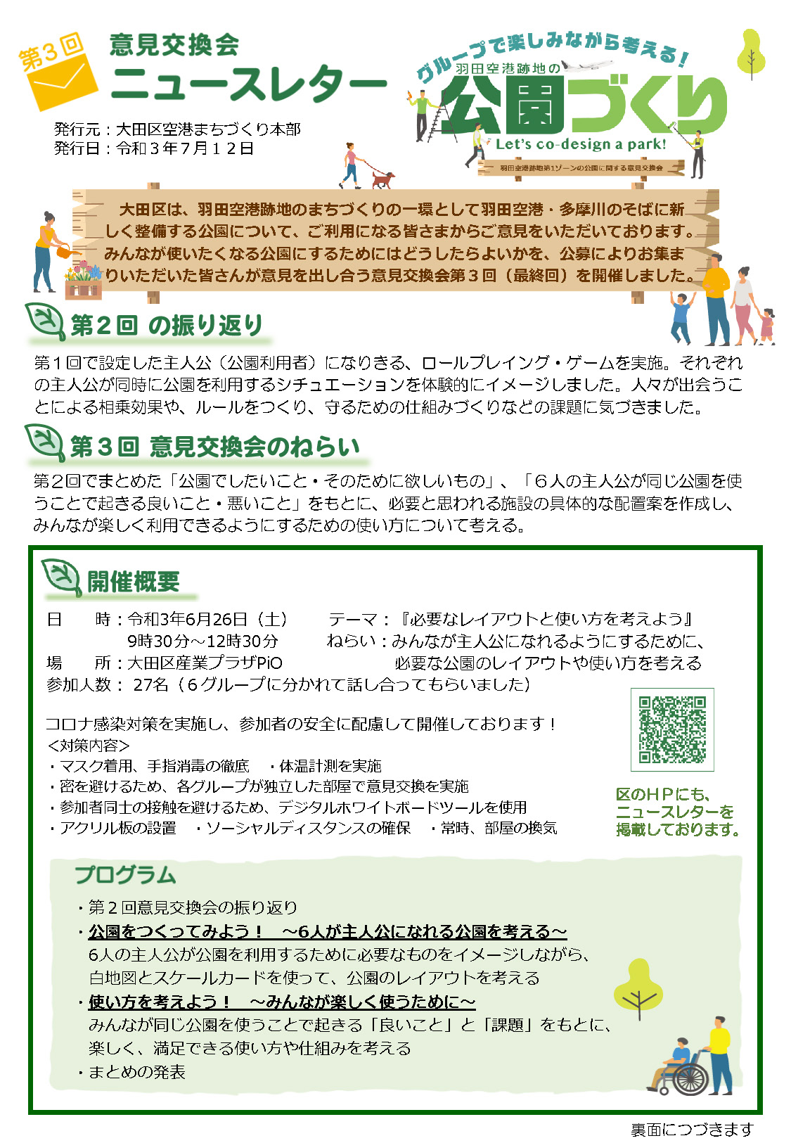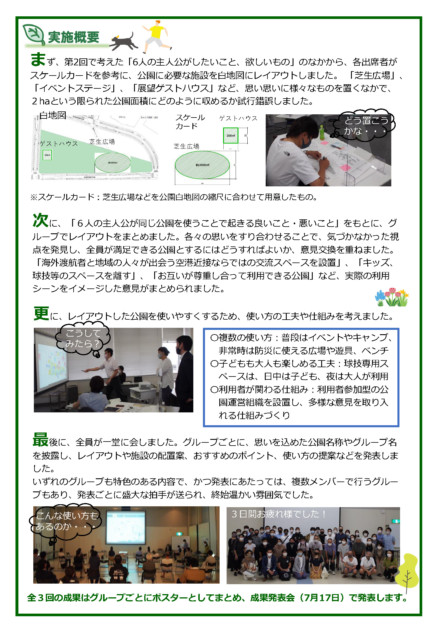 (成果の取りまとめ)グループで楽しみながら考える!「羽田空港跡地の公園づくり」~羽田空港跡地第1ゾーンの公園に関する意見交換会~