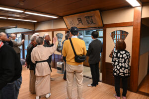 「霞月楼」では展示室を設け、関連する写真や資料を展示しています。この展示室を女将の説明を聞きながら見学しました。