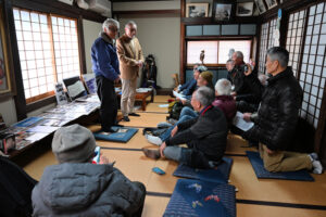 「霞月楼」で美味しい昼食を頂き、その後すぐ近くにある土浦まちかど蔵「大徳」に徒歩で移動。ここには古い蔵を用いた「土浦ツェッペリン伯号展示館」があり、ツェッペリン飛行船に関する充実した展示がありました。ここを皆さんで見学し、その後、土浦ツエッペリンクラブ会長より、ツェッペリン飛行船に関する沢山の面白いお話しをお聞きしました。