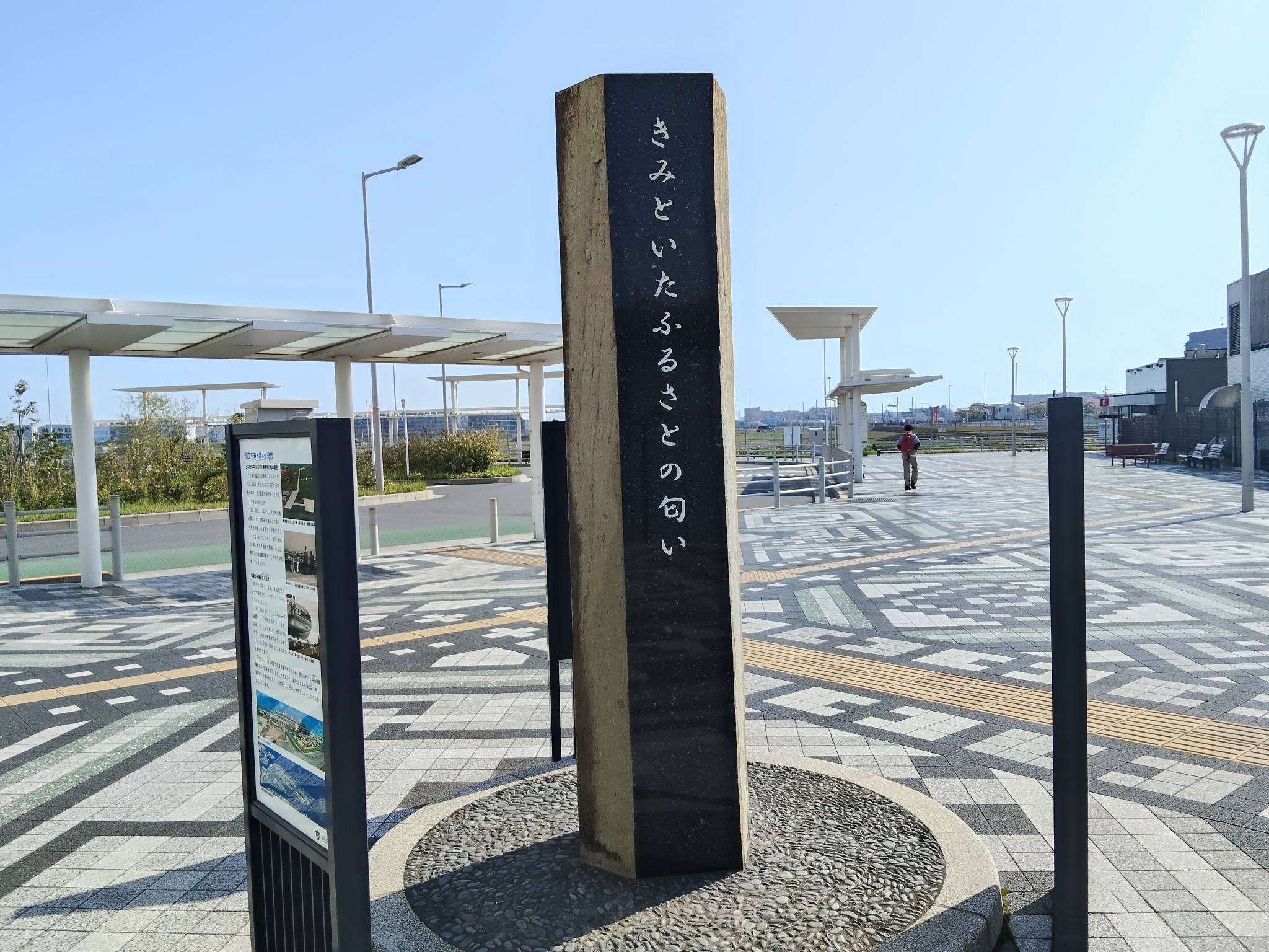 それから旧整備場地区、ソラムナード羽田緑地、日航350便慰霊碑などを巡り、第1ターミナルで「さんぽ」のまとめを行いました。